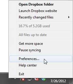 Dropbox'ı açarak bu eylemi gerçekleştirebilirsinizTercihlerUygulamada menü ve klasörün konumunu değiştirme.