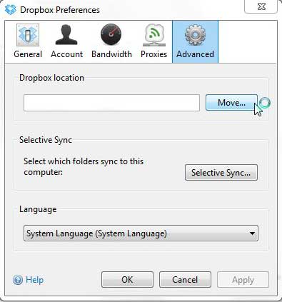 3. Adım: tıklayınTaşınmakiçindeki düğmeDropbox Konumupencerenin bölümü.