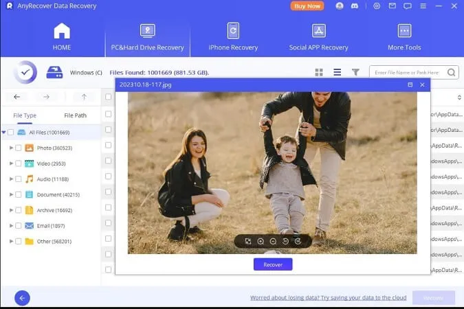 AnyRecover'ın kalitesi, birkaç tıklamada kaybolmanıza izin verecek şekildedir ve verilerin kalitesini de etkilemez. Verileri kurtarmadan önce, AnyRecover ayrıca verileri önizlemenizi sağlar.