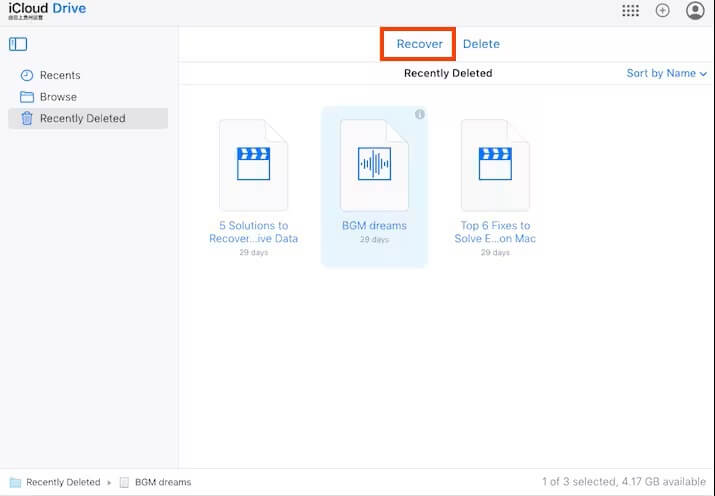 - Yakın zamanda silinmiş ve kurtarın:Albümlerden geçtikten sonra yakın zamanda silindi. Kurtarmak istediğiniz videoları seçin. Kurtar'ı tıklayın.