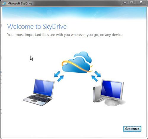 SkyDrive kurulum işlemi tamamlandıktan sonra, Windows 7'de SkyDrive klasörünü almadan sadece birkaç kısa adımsınız. Aşağıda gösterilen ekran, kurulum tamamlandıktan sonra ekranınızda görünecektir, bu nedenleBaşlamakPencerenin sağ alt köşesinde düğme.
