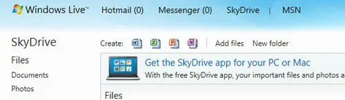 Henüz bir Windows Live kimliği oluşturmadıysanız, Windows 7'de bir SkyDrive klasörü almak için gereken ilk adımdır. Windows Live Kimliği oluşturmak ücretsiz bir işlemdir, bu yüzden takip edinBu bağlantıhesabınızı oluşturmak için. Windows Live Kimliğinizi oluşturma işlemini tamamladıktan sonra,Skydrive PageVe yeni oluşturduğunuz Windows Live kimliğiyle oturum açın. Daha sonra aşağıdaki resme benzeyen bir sayfa göreceksiniz.