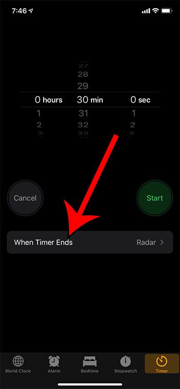 Adım 3: Zaman miktarını seçin, ardından “Zamanlayıcı bittiğinde” düğmesine dokunun.
