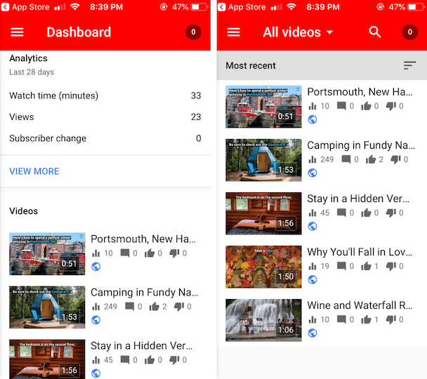 Tam olarak bir YouTube düzenleme uygulaması olmasa da, YouTube Studio, YouTube'da büyüyen vlog'unuzu yönetmek için en iyi uygulamadır. Analitiklerinizi kontrol etmek, yorumlara yanıt vermek, video bilgilerinizi güncellemek ve hesabınızı yönetmek için kullanın. YouTube stüdyosu, kitlelerini YouTube'da büyütmeye çalışan tüm vloggers için bir zorunluluktur.