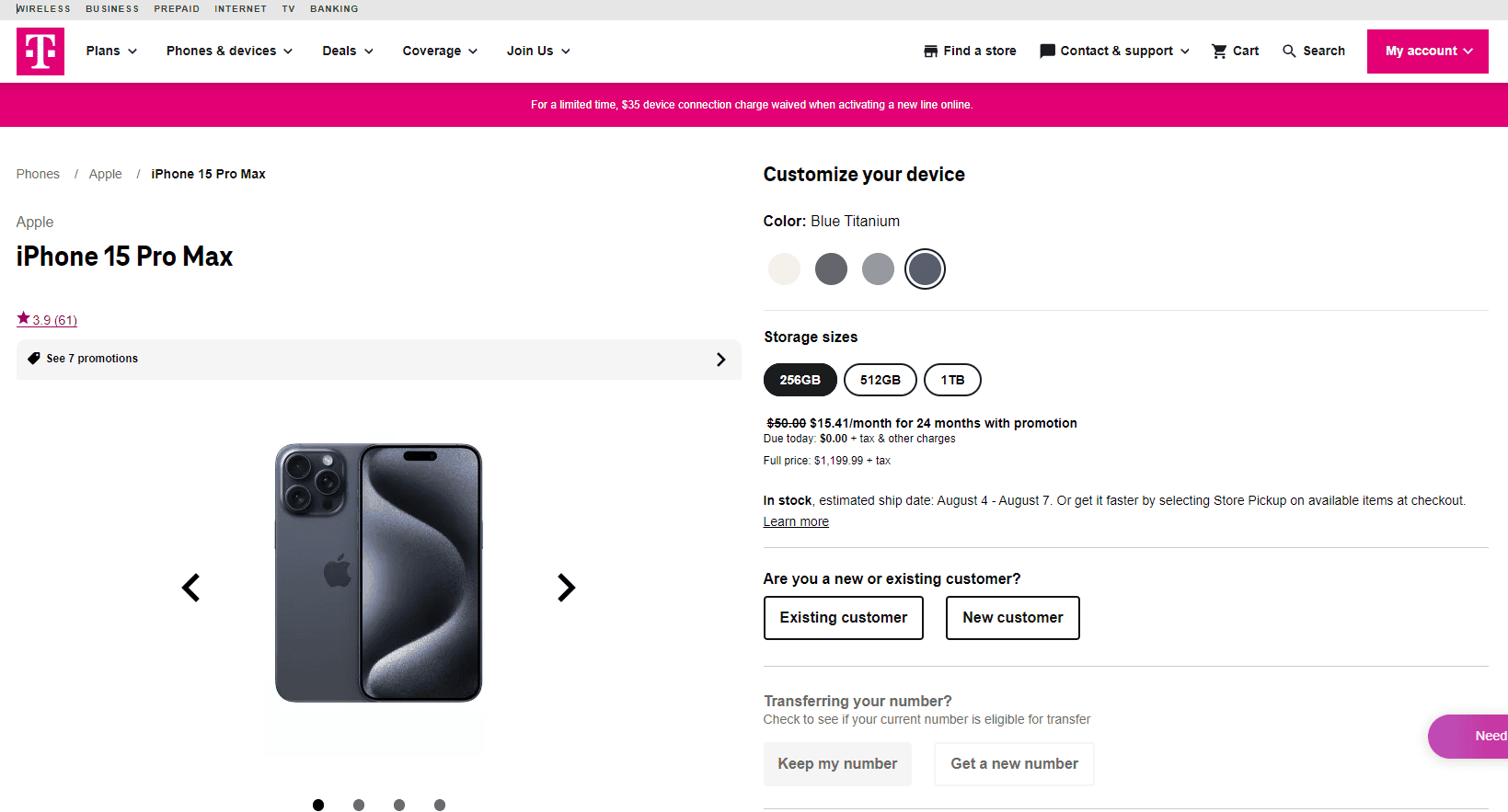 | T-Mobile | Takas ile ücretsiz iPhone 15 | Kalifiye Ticaret ve Go5G Plus veya GO5G Sonraki Plan |