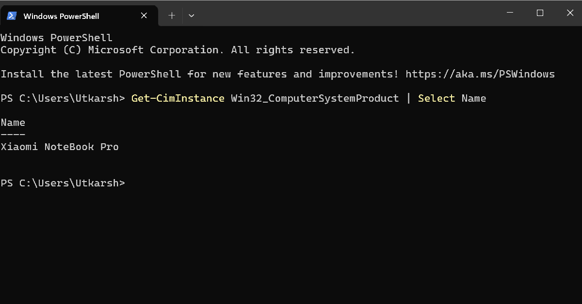 Get-ciminstance win32_computersystemproduct | İsim Seçin