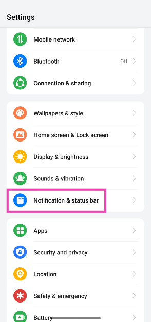 2. Adım:DenemekBildirim ve Durum Çubuğu.