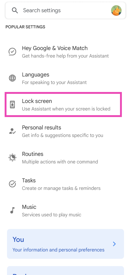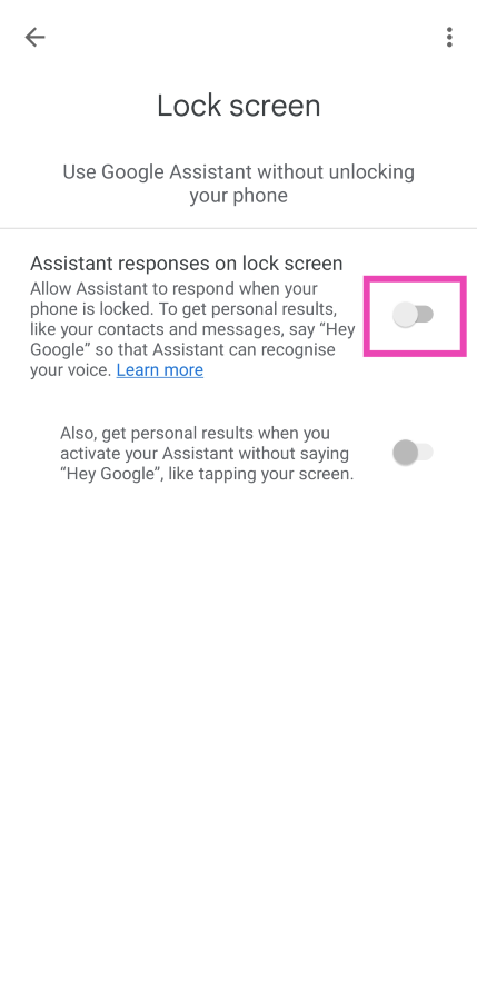 Adım 6:Geçiş anahtarını kapatınKilit ekranında asistan yanıtları.