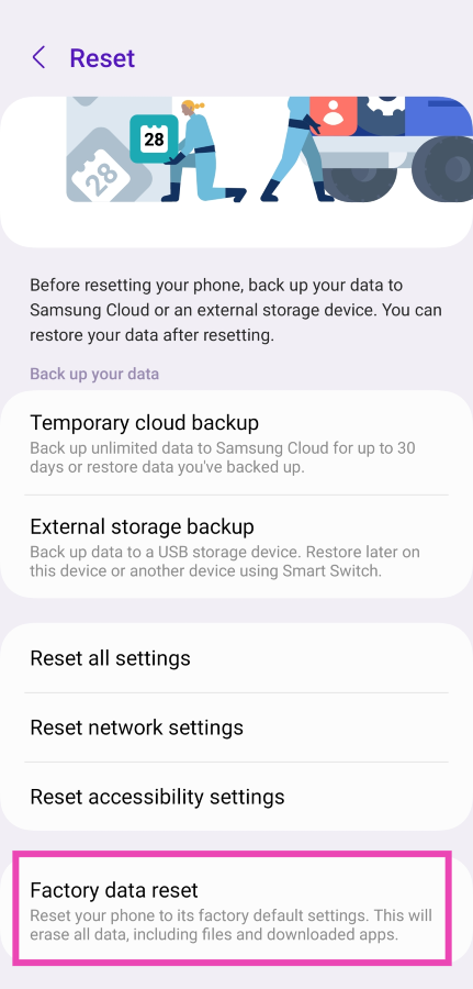 Sorun kesinlikle yazılımla ilgili ise, cihazınızın fabrika sıfırlamasını düzeltmek için son hendek ölçüsü olarak gerçekleştirebilirsiniz. Telefonunuzun tam bir sıfırlaması kalıcı olarak sileceğinden, tüm kişisel verilerinizi yedeklediğinizden emin olun.