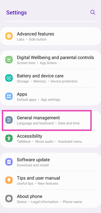 1. Adım:Gidip gelmekAyarlar, aşağı kaydırın ve seçinGenel yönetim.