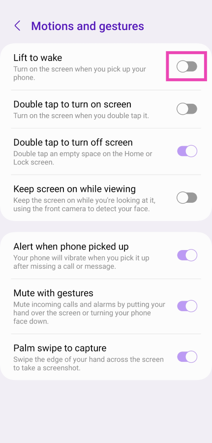 Telefonunuzun ekranı yan tuşa basmadan rastgele yanarsa, telefonunuzu her kaldırdığınızda bildirimlere hızlı bir göz atmak için kilit ekranını etkinleştiren 'Wake to Wake' özelliğinden kaynaklanabilir. Bu özelliği gelişmiş ayarlardan kapatabilirsiniz.