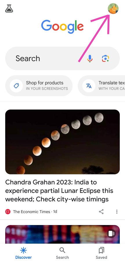 2. Adım:Dokunprofil resmiekranın sağ üst köşesinde.