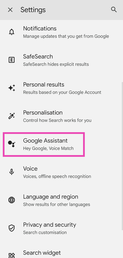 4. Adım:SeçmeGoogle Asistan.
