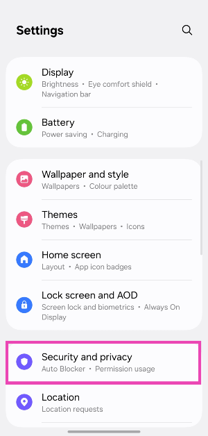 1. Adım:Gidip gelmekAyarlarve dokununGüvenlik ve Gizlilik.