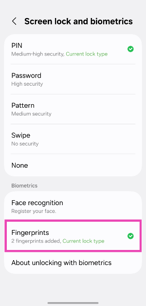2. Adım:DenemekEkran Kilidi ve biyometri.