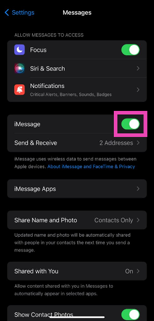 2. Adım:Geçiş anahtarını kapatınimessage.