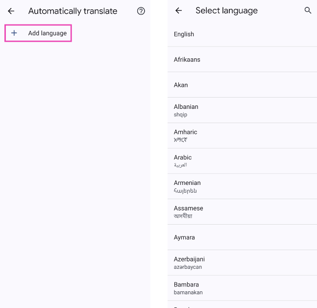 Adım 6:Tıklayın 'Dil ekle'Yanında Düğme'Bu dilleri otomatik olarak çevirin'Ve seçtiğiniz dilleri ekleyin.