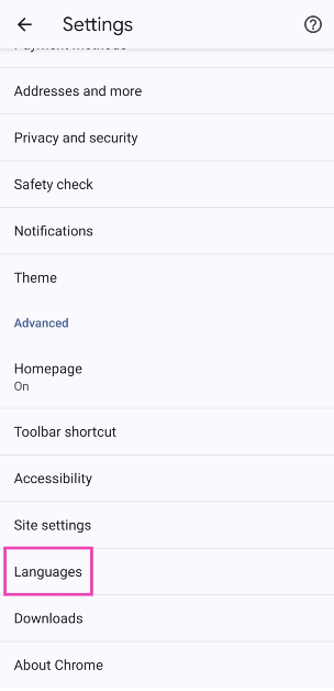3. Adım:Aşağı kaydırın ve üzerine dokununDiller.