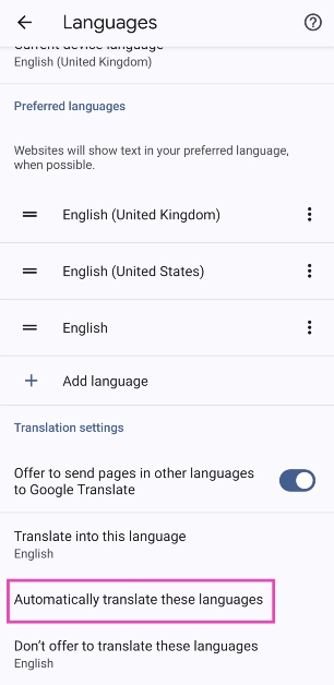 Adım 6:Dokun 'Bu dilleri otomatik olarak çevirin'.