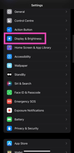 2. Adım:DenemekEkran ve Parlaklık.