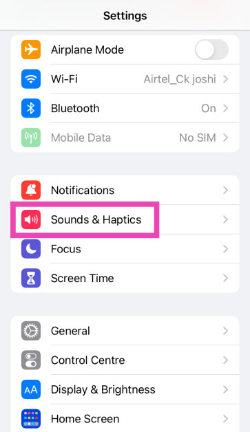 2. Adım:Seçinuyarı tonuTitreşim desenini değiştirmek istediğiniz için.
