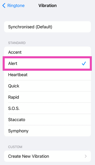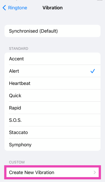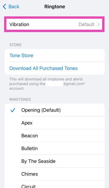 2. Adım:Seçinuyarı tonuözel bir titreşim deseni oluşturmak istediğiniz için.