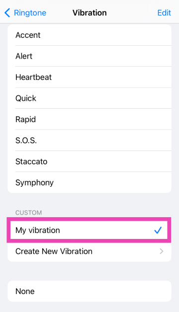 Adım 7:Önceki sayfaya git veseçmeYeni yarattığınız titreşim.