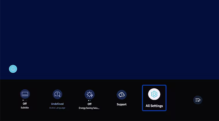 1. Adım:BasınHızlı Ayarlar Düğmesiuzaktan kumandada ve seçinAyarlar. Uzaktan kumandada özel bir ayar düğmesi yoksa seçinAyarlarTV'lerinizdenana sayfa.