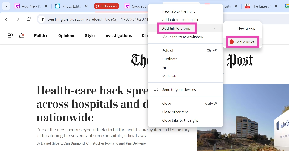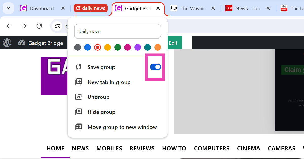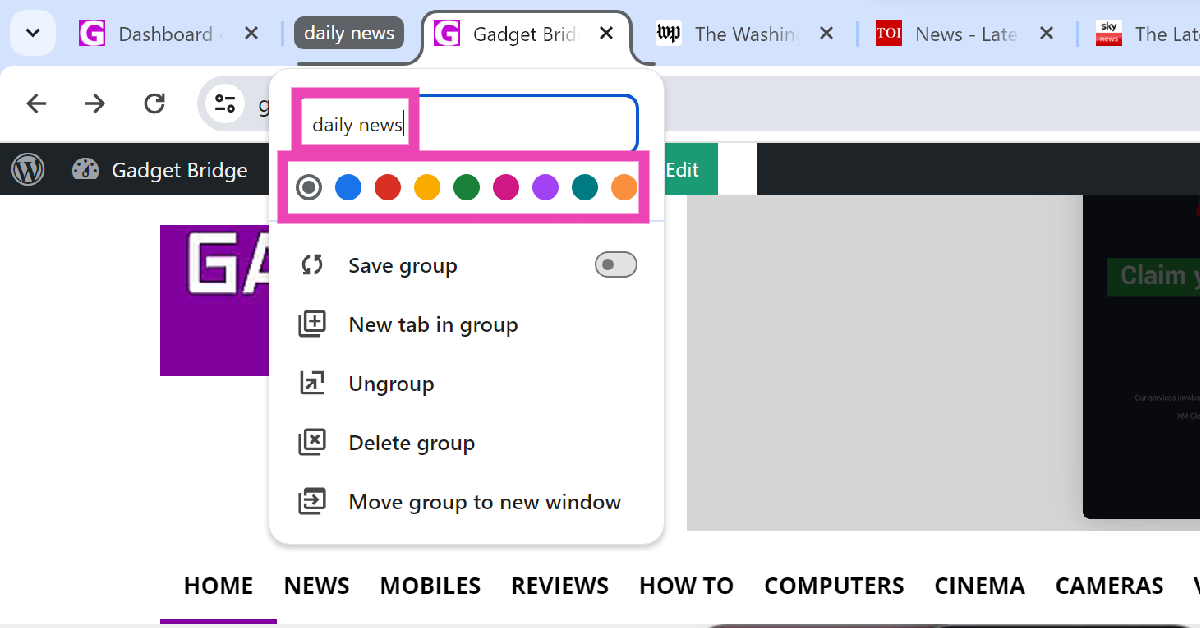 Fikir basittir - sekme grupları birden fazla sekmeyi bir araya getirmenize izin verir. Tarayıcıda daha fazla alan oluşturmak için sekmeleri tek bir tıklamayla daraltabilir, bunları kolayca tanımlamak için belirli bir renk atayabilir ve hatta daha sonra kaydedebilirsiniz. Başka bir cihazda Chrome hesabınıza giriş yaptığınızda sekme gruplarınıza erişebilirsiniz. Bu özellik, çalışma görevlerinizi kolaylaştırmak için kullanılabilir. Tüm araştırma sekmelerini birlikte gruplandırabilir ve için boş alan bırakabilirsiniz.Krom çubuğundaki diğer sekmeler. İş gününüze giderken Daily News'ten geçmeyi seviyorsanız, en sevdiğiniz medya kuruluşlarına tek bir tıklamayla erişebilirsiniz.