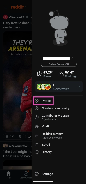 Aktif Toplulukları Reddit Profilinden Gizle (Telefon)