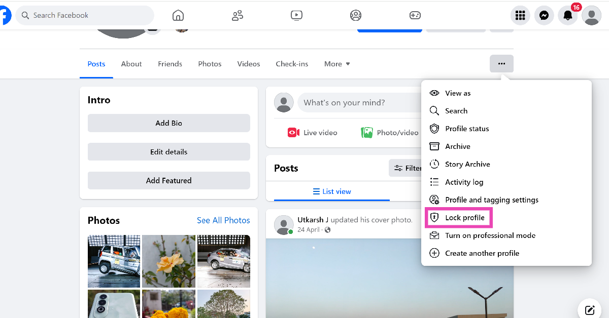 Mobil uygulama veya PC'deki Facebook profilinize gidin, 'Profil Düzenle' yakınındaki Ellips'e basın, 'Kilit Profili'ni seçin, ardından' Profilinizi Kilitle 'ye tıklayın.