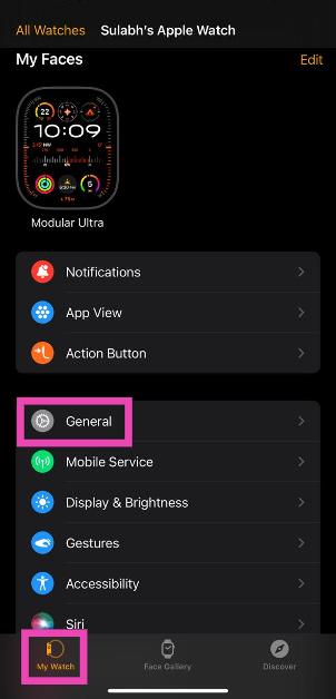 1. Adım:BaşlatmakApple Watch uygulamasıiPhone'unuzda veSaatim sekmem.