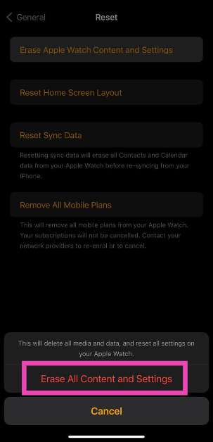 4. Adım:SeçmeApple Watch içeriğini ve ayarlarını silin.
