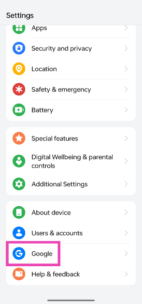 1. Adım:Gidip gelmekAyarlarve seçGoogle.