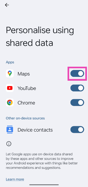 4. Adım:Geçiş anahtarını kapatınHaritalar.