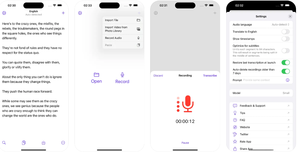 Open Ai'nin fısıltısına dayanarak,AikoiPhone ve Mac'inizde sesli notlar yazacak en iyi uygulamalardan biridir. En iyi yanı, uygulamanın cihazınızdaki tüm hesaplamaları yapmasıdır. Aiko'nun ses notlarını kopyalarken doğruluğu başka bir uygulama tarafından eşsizdir. Memoya hiçbir şey eklemeyen ve temiz, net bir transkripsiyon sunan sesleri ayıklar. Bu uygulamayı birkaç saat uzunluğunda sesli notlar için kullanabilirsiniz. Tek gereksinim, iPhone'unuzun iOS 17.2 veya üstünü çalıştırması ve bir A12 biyonik çip veya daha sonra donatılması gerektiğidir.