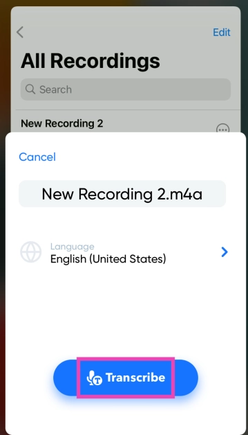 Uygun dil paketlerini indirdikten sonra, kaydedici uygulamasına gidin, sesli notu seçin ve metinde görüntülemek için 'Transcribe' düğmesine basın.