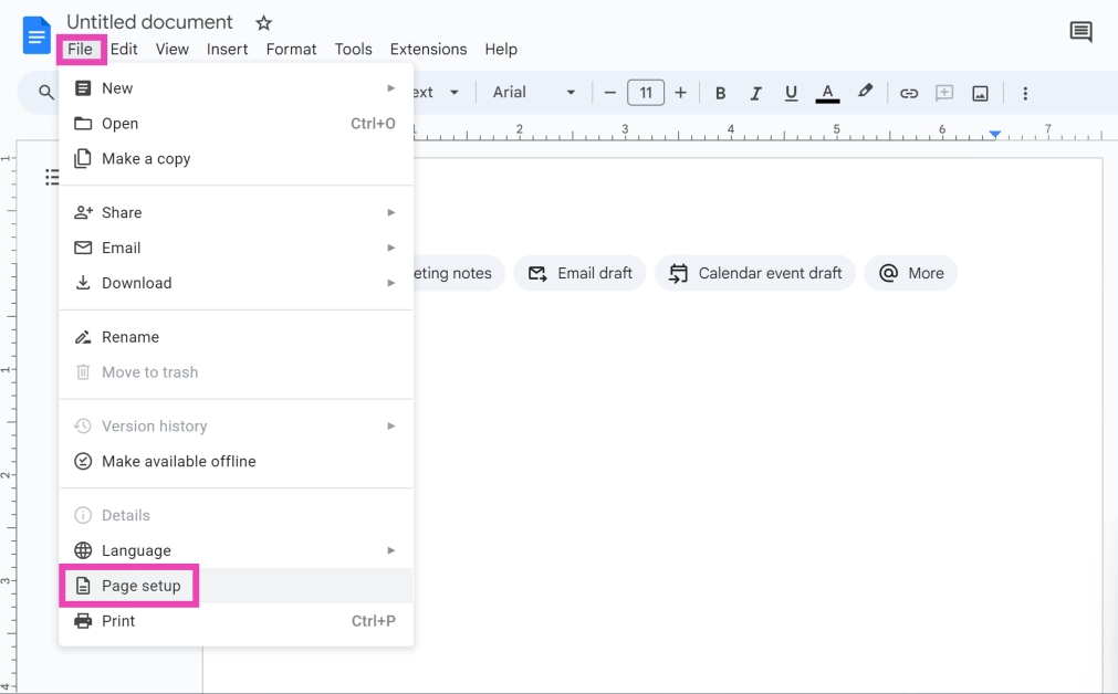 Google Dokümanlar'daki sayfa boyutunu değiştirmenin üç önemli yolu vardır. Bunu yapmanın en hızlı yolu, dosya ayarlarında 'Sayfa Kurulumu' seçeneğini seçmektir. Bu seçeneği kullanmak, herhangi bir şey yazmadan önce sayfanın düzeni ve boyutunu değiştirmenizi sağlar. Dokümanlar için Sayfa Sizer eklentisini de kullanabilir ve uzantılar ayarlarından erişebilirsiniz.