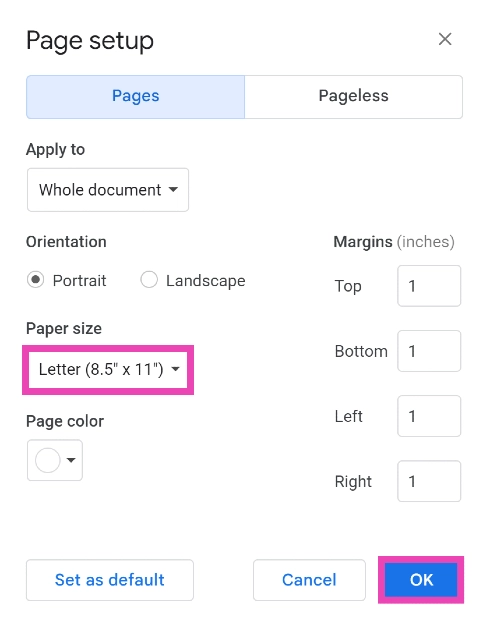 Yazdırmadan önce Google Dokümanlarındaki sayfa boyutunu değiştirin