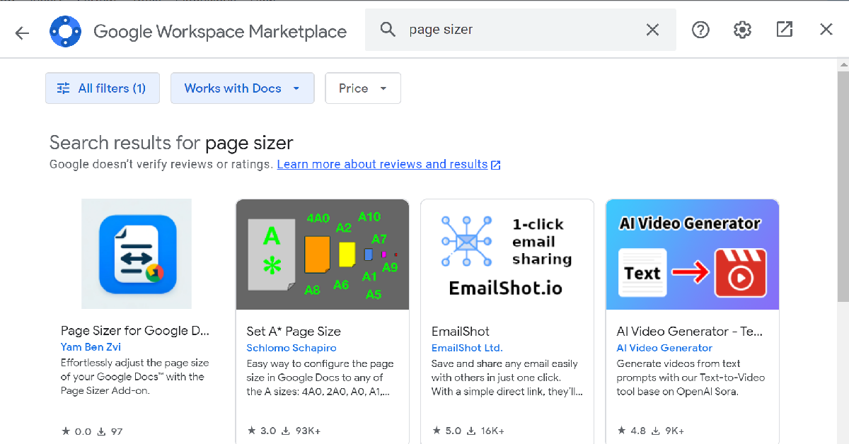 Google Dokümanlarındaki sayfa boyutunu değiştirmek için bir eklenti kullanın