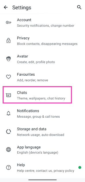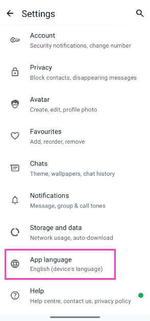Varsayılan olarak, WhatsApp cihazınızın dilini takip eder. Bunu giderek değiştirebilirsinizWhatsApp Ayarları> Langauges.