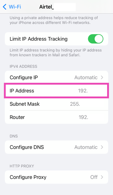 3. Adım:Görüntülemek için aşağı kaydırınIP adresi.