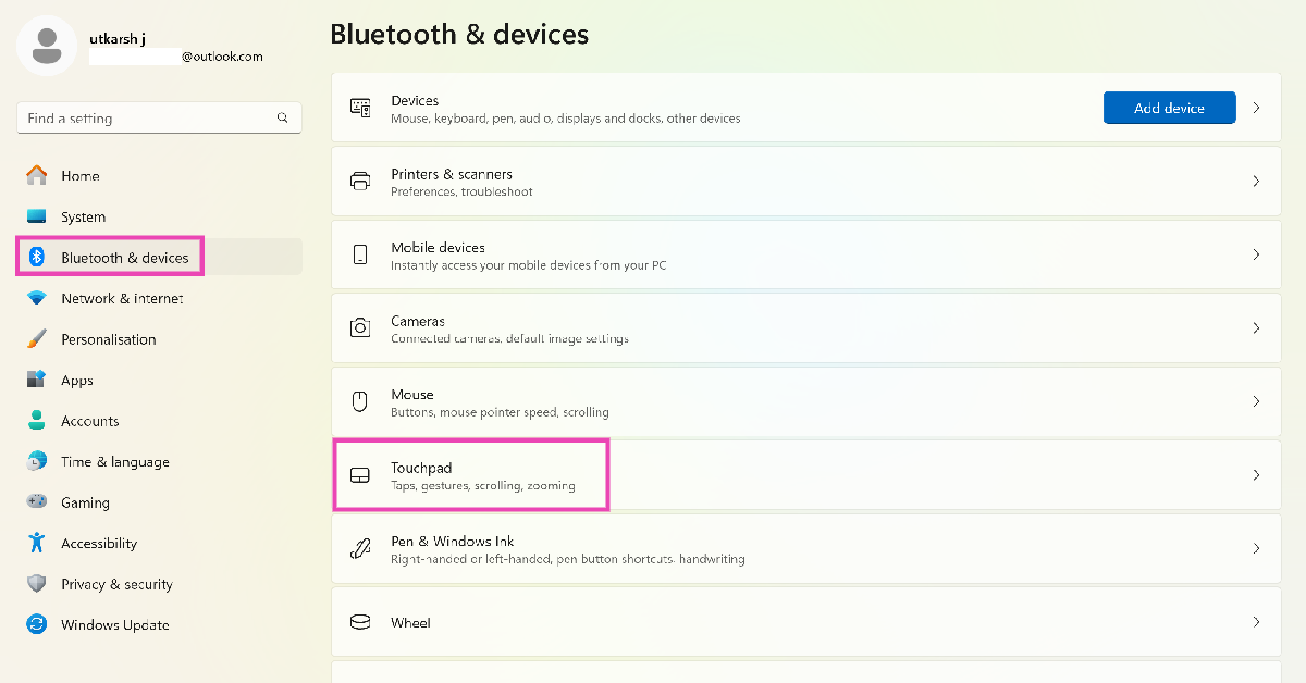 2. Adım:SeçmeBluetooth ve cihazlar.