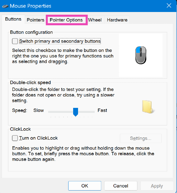 3. Adım:Klavyenizi kullanın.İşaretçi Seçeneklerisekme.