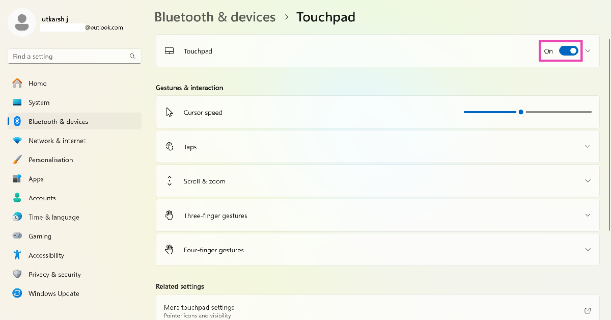 4. Adım:Yandaki geçiş anahtarını açınDokunmatik yüzey.