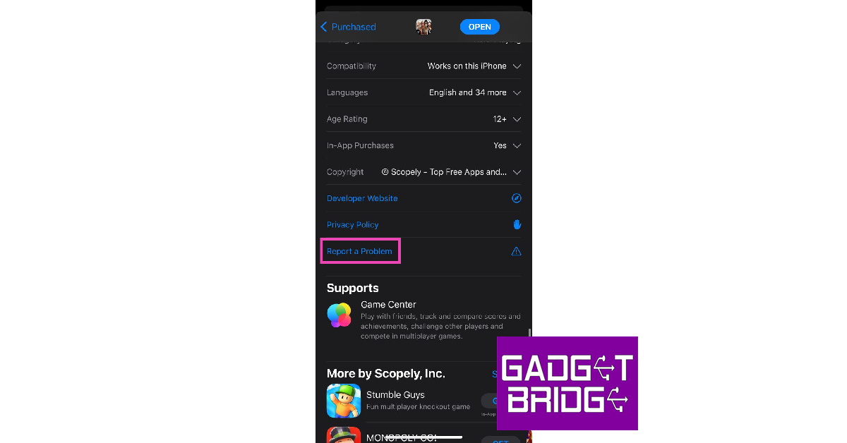 4. Adım:Aşağı kaydırın ve bir sorunu bildirin.