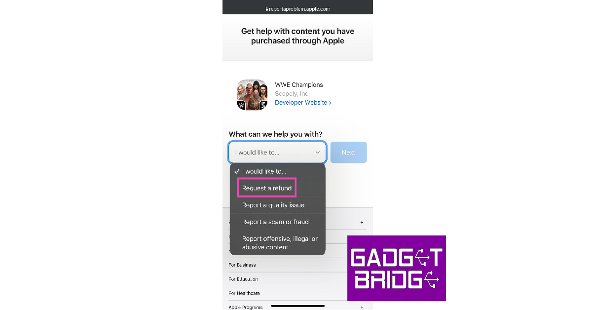 Adım 6:'Ben…' yazan kutuya dokunun ve geri ödeme talep et'i seçin.