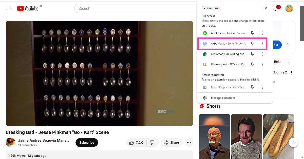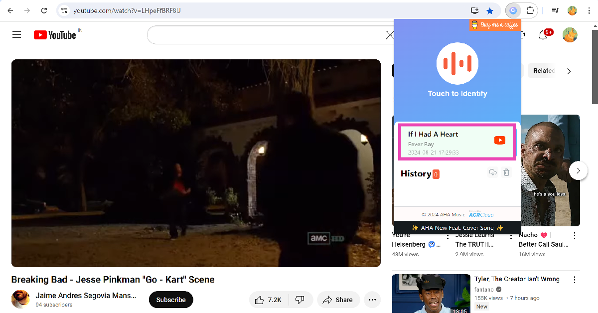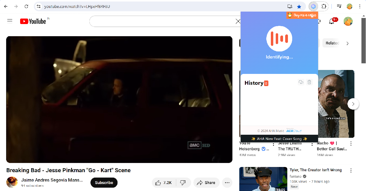 4. Adım: Göz atmakArka planda şarkının bulunduğu videonun bir kısmına. AHA müziği şarkıyı tanımlamak biraz zaman alacak.
