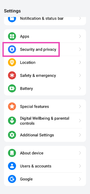 1. Adım:Gidip gelmekAyarlarve seçGüvenlik ve Gizlilik.