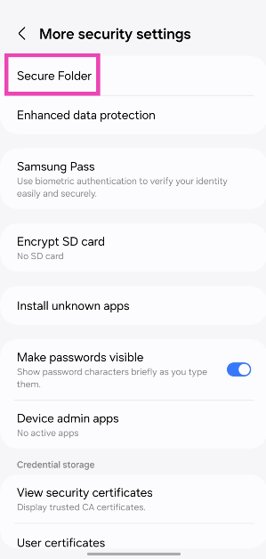 Şu anda,Güvenli KlasörSamsung hesabı olmadan.